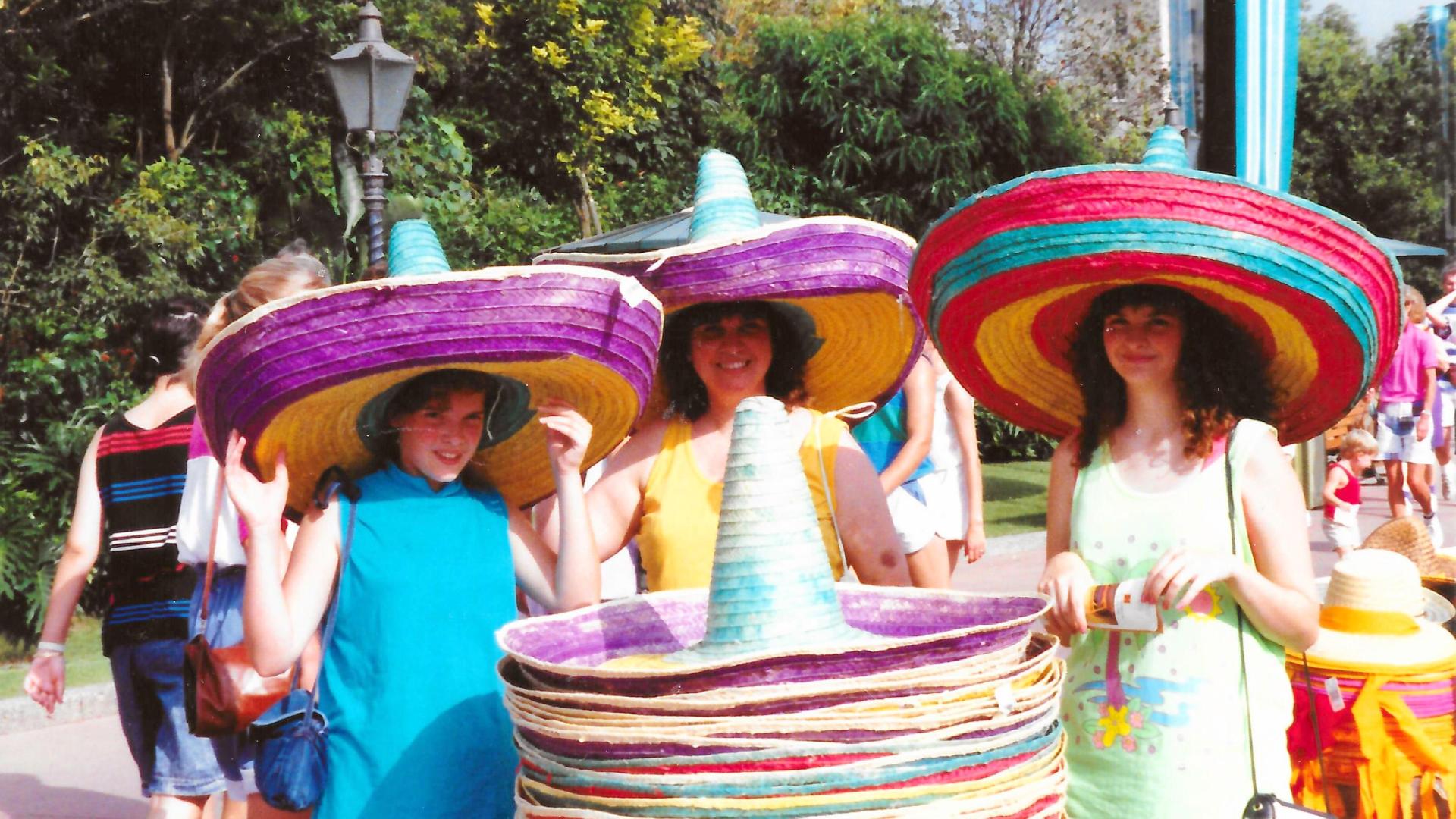 Something that is kind of a fun tradition for us is to try on different hats for pictures…character hats, funny hats, hats from each country in the World Showcase. I didn’t realize it really until looking through a bunch of old Disney pictures recently.