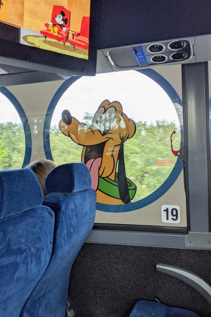 Once we made our way to Magical Express, there was quite a long looking line to check in. Because everyone was following the 6 foot distance rule, that made it seem longer than it actually was. We didn’t wait too terribly long to be told what line to go to for our resort. Once on board the Magical Express bus, the driver told us what numbered seat to go to, as they were keeping rows around other parties open. It was quite nice to not be crammed in there!