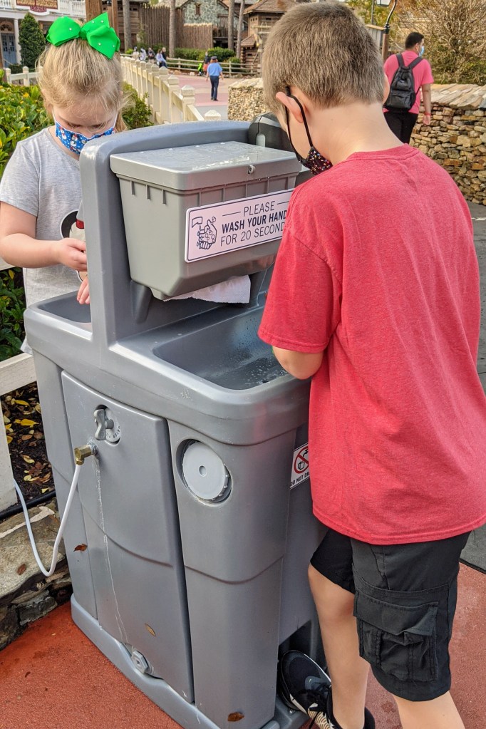 Another nice thing to see in the parks & at the resorts was hand sanitizer. I always brought my own anyway, but I made sure our family always used it before and after attractions. There were also hand washing stations located around the parks, and they were so handy to actually WASH your hands with soap. I’ve heard that those have been removed, and I’m kind of sad about that.